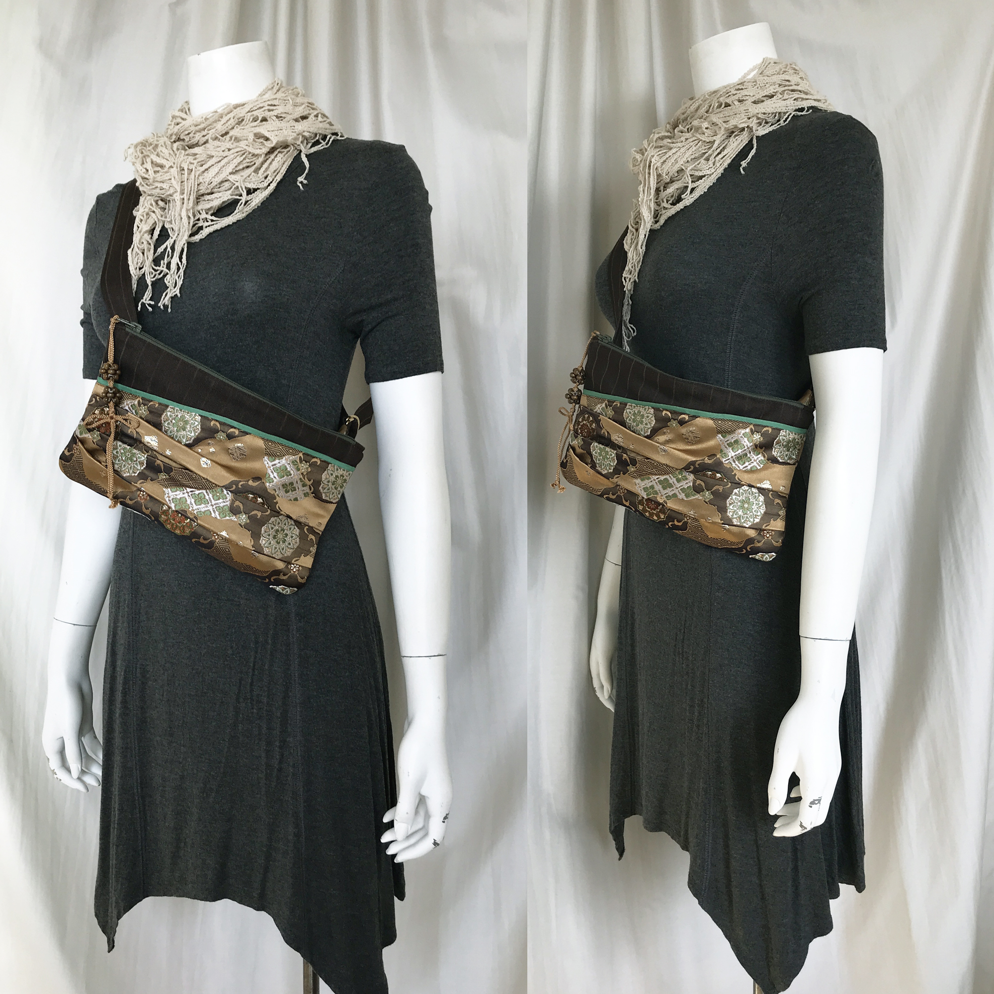 JAPANESE BROCADE OBI RECYCLED - 4-WAY FANNY PACK/ HIP BAG/ CLUTCH