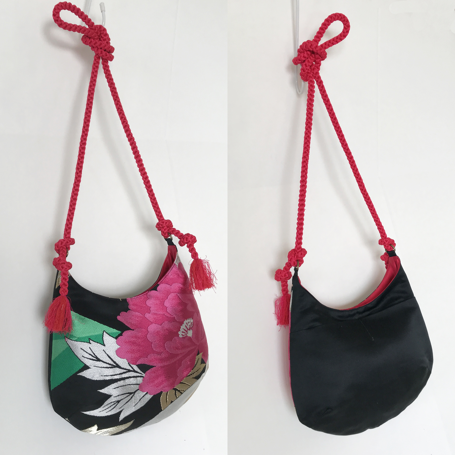 A bag is made of beautiful Japanese vintage brocade obi and lined with kimono fabric.