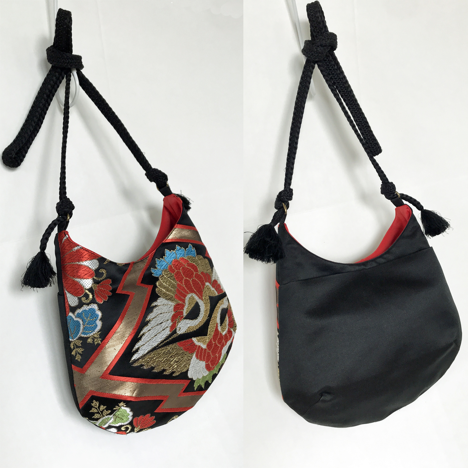 A bag is made of beautiful vintage Japanese brocade obi and lined with kimono fabric.